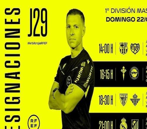 官方消息,何塞-穆努埃拉将执法西甲第29轮皇马vs马竞的马德里德比。周日西甲裁判安排:巴塞罗那vs巴列卡诺 主裁:阿德里安-科尔德罗(VAR:劳尔-冈萨雷斯)塞尔塔vs阿拉维斯 主裁:米格